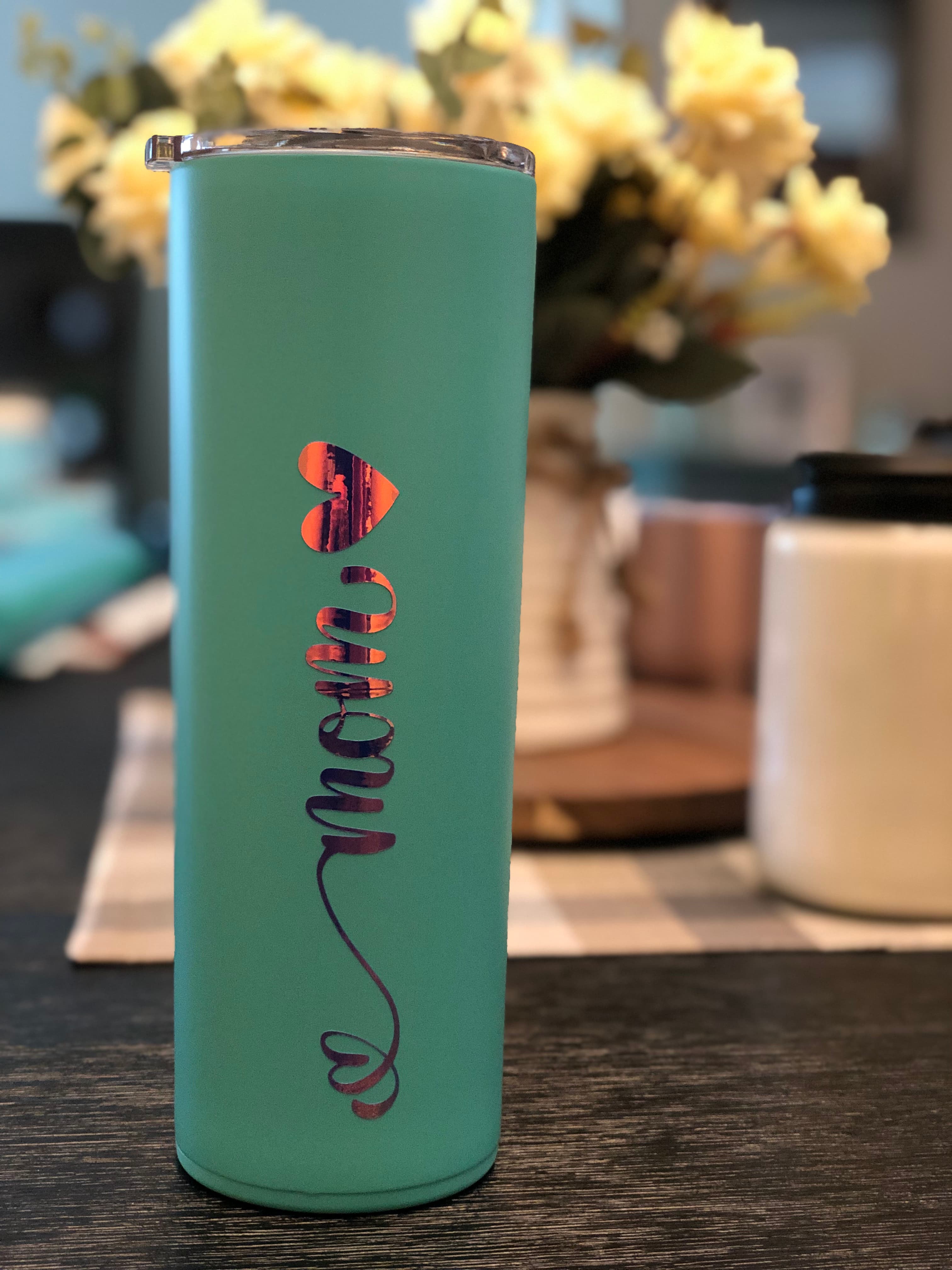 Stay stylish while sipping your favorite drinks with a personalized stainless steel tumbler. Each tumbler is customized with your name or special design, making it truly one-of-a-kind. Choose from elegant fonts, fun script styles, or even floral and heart-inspired designs (see examples), and create the perfect gift or personal accessory. Crafted from durable stainless steel with a double-wall vacuum seal, these tumblers keep drinks hot for hours and cold even longer. The slim design fits comfortably in your hand and most cup holders, while the clear lid helps prevent spills on the go. Whether you’re grabbing coffee on the way to work, sipping iced tea at the pool, or gifting something special to a loved one, these personalized tumblers combine practicality with a meaningful, custom touch. Features: • vinyl-applied personalization (names, monograms, designs) • High-quality stainless steel construction • Double-wall insulated to keep drinks hot or cold for hours • Slim, modern design fits most car cup holders • Includes clear spill-resistant lid • Perfect for gifts, bridesmaids, moms, teachers, birthdays, or everyday use Sip in style—because your drinkware should be as unique as you are.